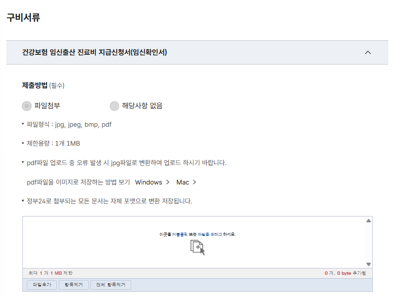 기본적으로 아래 서류들을 준비한 후 jpg, jpeg, bmp, pdf 형식으로 파일 업로드