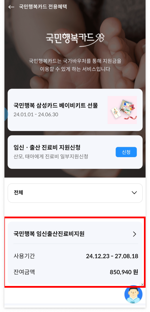 삼성카드 임신 바우처 잔액 조회 방법
