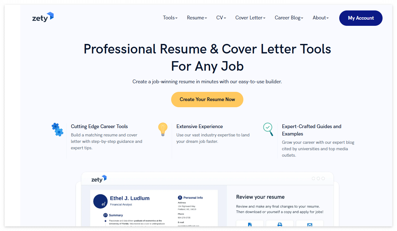 이번 포스팅에서 소개해 드릴 영문 이력서 무료 작성 방법은 바로 'zety'라는 사이트를 이용하는 것입니다. zety는 간단한 정보 입력과 선택으로 근사한 영문 이력서를 만들어주는 사이트입니다.