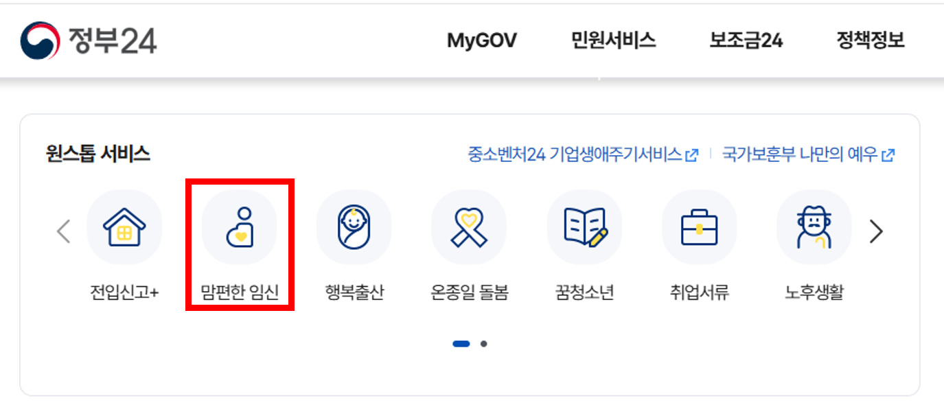 맘편한 임신 | 원스톱/생애주기/꾸러미 서비스 | 정부24